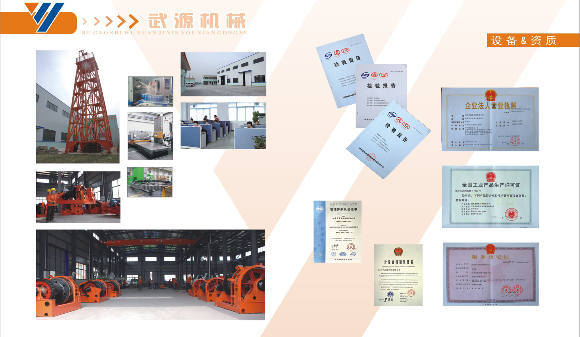 如皋市武源機械有限公司是一家集研發(fā)、制造、銷售、服務(wù)于一體的生產(chǎn)系列卷揚機、絞車、絞盤專業(yè)制造公司。公司通過ISO9001:2000質(zhì)量體系認(rèn)證,建立了完善的質(zhì)量管理體系。公司注重科技創(chuàng)新和技術(shù)進(jìn)步,擁有專業(yè)研發(fā)團隊和成熟的專業(yè)技術(shù),全面的生產(chǎn)設(shè)備和完善的檢測手段,并致力于高技術(shù)含量起重類卷揚機、礦用絞車和礦用提升機的新產(chǎn)品研發(fā)。另外公司生產(chǎn)照明設(shè)施、照明器材產(chǎn)品主要有燈塔、燈橋、燈桿等。這些產(chǎn)品廣泛運用于鐵路站臺、貨場、工礦企業(yè)、城市廣場、立交橋、體育場、飛機場及港口碼頭的大型照明